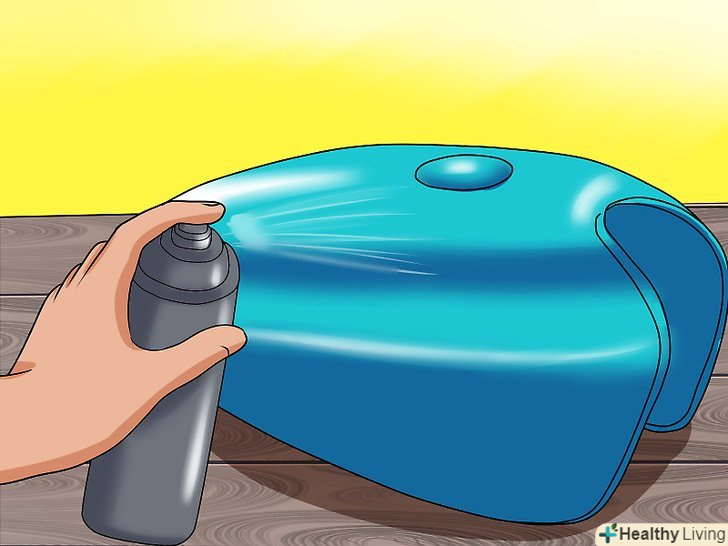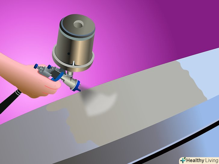 За допомогою пульверизатора нанесіть на поверхню три-чотири шари обраної фарби.перед нанесенням завершального шару поверхню знову необхідно обробити наждачним папером.- Дочекайтеся повного висихання перед нанесенням кожного наступного шару, дотримуючись часу, вказаного на банку з фарбою.[4]