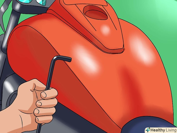 Зніміть і відкладіть деталі мотоцикла, які ви будете фарбувати.у даній статті Як приклад буде використовуватися бензобак, але цей метод застосуємо і до всіх інших елементів. Бензобак буде відмінною відправною точкою для новачка завдяки простоті зняття і широким плоским поверхонь, з якими легко працювати.- Підберіть торцевий ключ потрібного розміру для зняття болтів, що утримують бензобак.