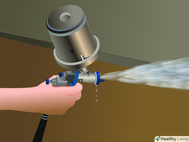 Змішайте фарбу з розчинником.як і у випадку з ґрунтовкою, використовуйте пропорції, зазначені на етикетці конкретного продукту. Не забудьте ретельно розмішати. Так ви уникнете засмічення пульверизатора і завдасте рівний шар фарби.