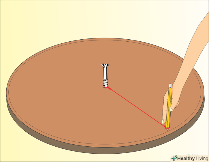 Позначте центр кола. знайти центр ви можете за допомогою двох легких ліній, проведених перпендикулярно один одному по діаметру кола. Те місце, де лінії перетнуться, і буде центром колеса. Вставте в цю точку невеликий цвях або шуруп.