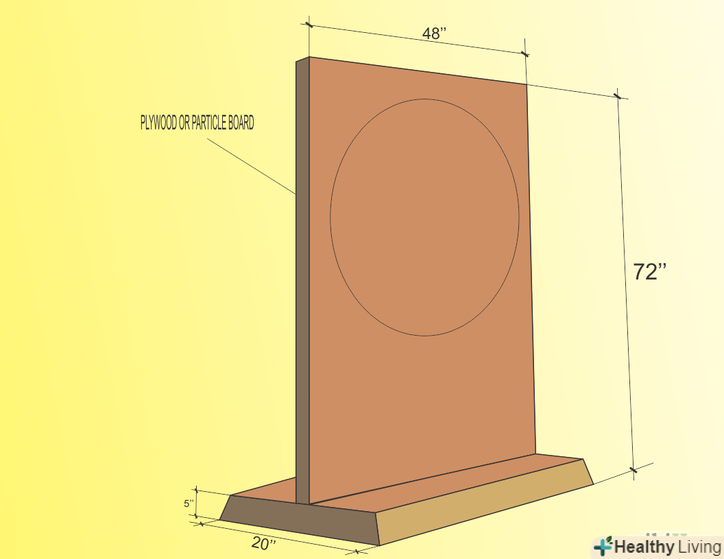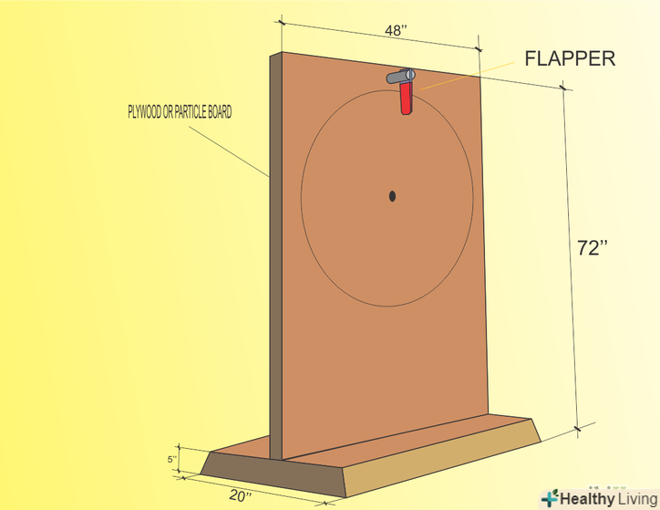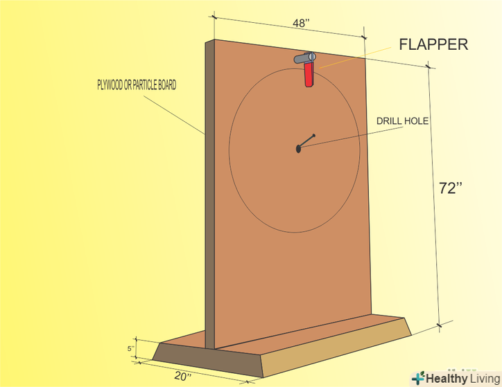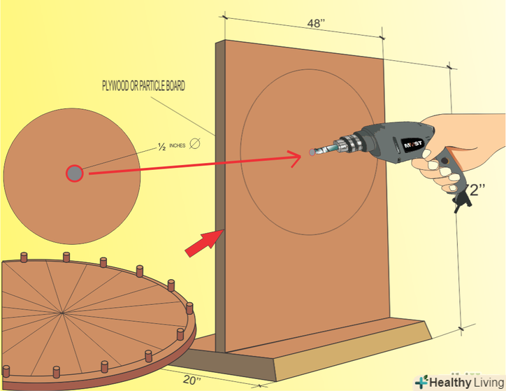 - Виміряйте основу. вона повинна бути не менше 2.5 см в товщину, по ширині вона повинна бути такою ж або ширше, ніж коло. Для нашого прикладу (ми брали коло 90 см в діаметрі), основа буде 90 - 120 см в ширину. Основа повинна витримувати вагу самого колеса (плюс застосовувана сила при обертанні колеса). Оптимальний розмір 50-90 см.
