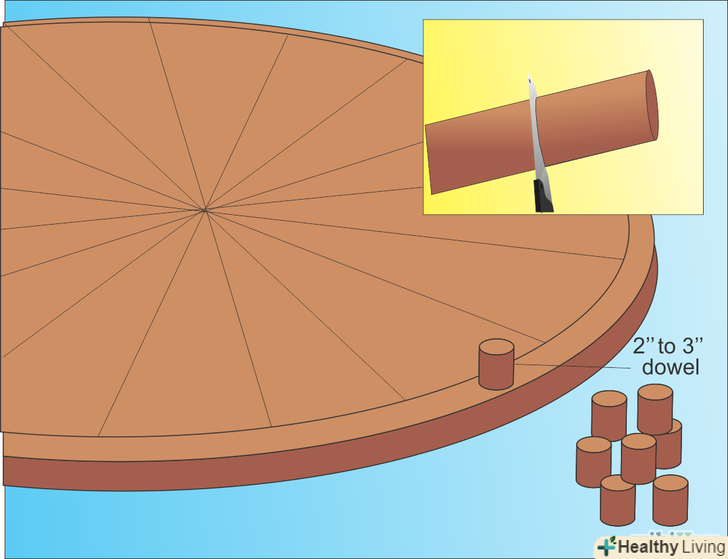 Наріжте шпонки. вам знадобиться стільки ж шпонок, скільки часток у Вашого колеса. У довжину кожна шпонка повинна бути приблизно 5 - 7 см і 1 - 2 см в діаметрі.