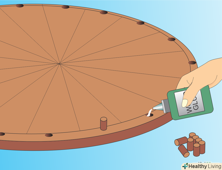 Приклейте шпонки до отворів. переконайтеся, що вони приклеєні добре, і що вони не вилітають, коли ви крутите колесо.