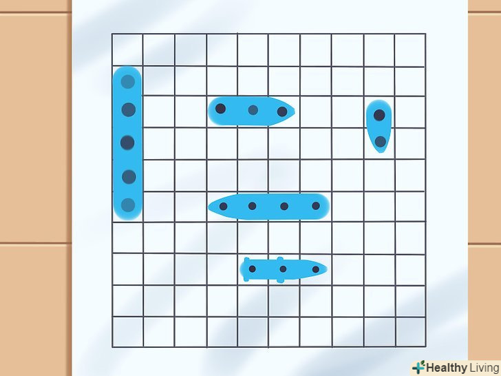 Перевірте наявність всіх кораблів. кораблі повинні бути різної довжини і займати різну кількість клітин ігрового поля. У обох гравців повинні бути однакові комплекти кораблів. Нижче наводиться стандартний список, а при нестачі елементів можна просто упевнитися, що обидва гравці використовують однакові кораблі в однаковій кількості: [1]- Один корабель на п'ять клітин (авіаносець)