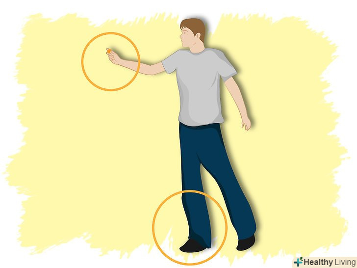 Готуючись до кидка, стійте в позиції «ключ». Нога повинна стояти попереду та, якою рукою ви кидаєте м'яч. Друга нога розташована далі (приклад на фото).