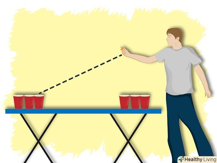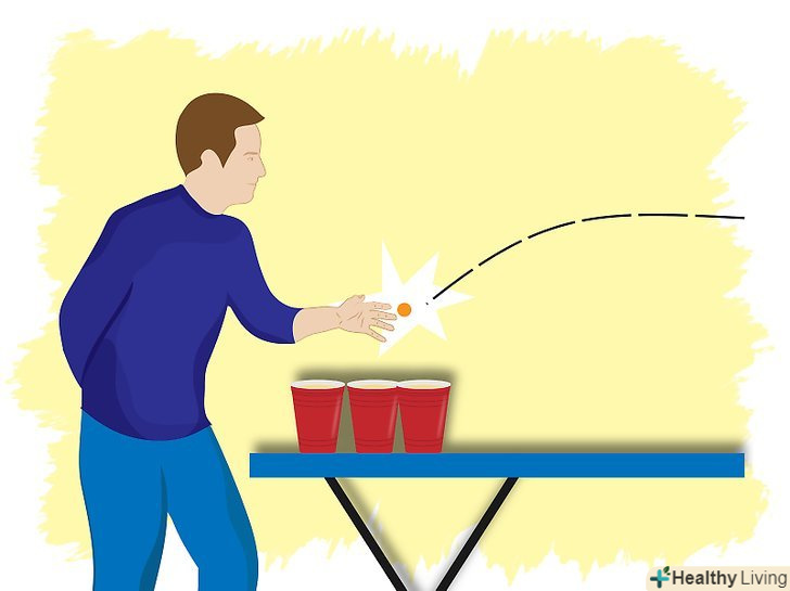 Для хлопчиків-ви також можете витіснити м'яч. поки він летить, постарайтеся рукою потрапити під м'яч. Ви повинні все зробити швидко, провівши пальцем під м'ячем туди і назад і швидко витягнувши його.- Коли суперники займаються перестановкою склянок, спробуйте зробити кидок. Якщо вийде, повторіть ще раз.