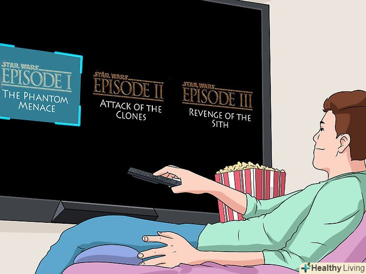 Подивіться другу трилогію "Зоряних воєн".у другій трилогії "Зоряних воєн", також відомої як" приквел-трилогія", дія відбувається до подій оригінальних фільмів. Перегляньте другий випуск фільмів, щоб дізнатися про події, що передують історії " Зоряні війни. Епізод IV": Нова надія. Зверніть пильну увагу на персонажів. Деякі з них будуть Вам знайомі з перших трьох фільмів.[4] до другої трилогії відносяться: