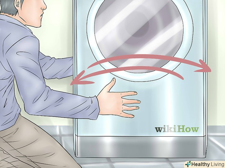 Встановіть причину трясіння під час віджиму. зазвичай причина полягає або в білизні, яка не знаходиться в рівновазі, або в машині, погано стоїть на підлозі.- Відновіть рівновагу в машині, відкривши дверцята і перевіривши положення білизни. Якщо з одного боку білизни набагато більше, пересуньте його, закрийте дверцята, запустіть машину знову і подивіться, що вийде. Якщо ваші зусилля допомогли, то може знадобитися додаткове втручання і переміщення білизни.