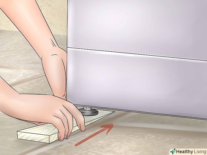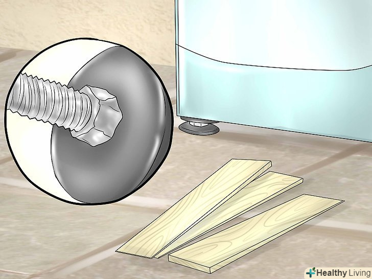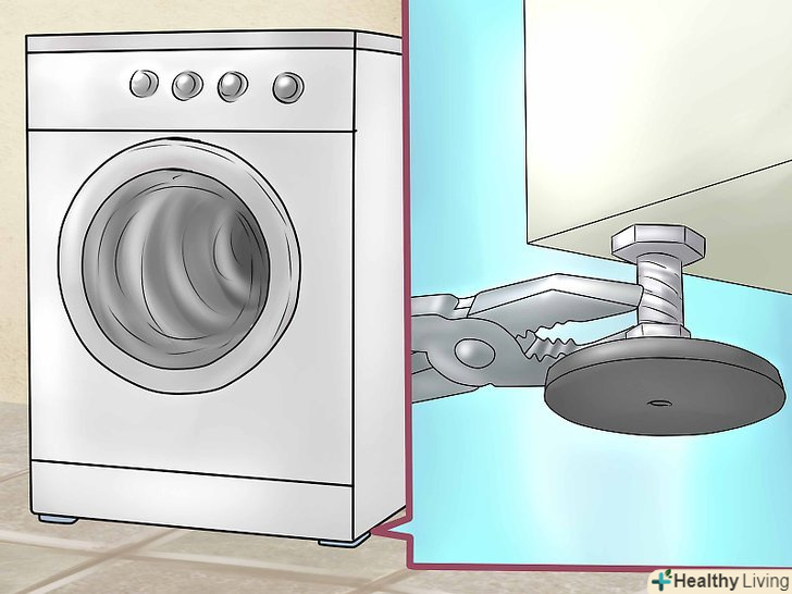 Вирівняйте машину і переконайтеся, що вона надійно стоїть. встаньте на коліна перед машиною, покачайте її і загляньте вниз, щоб побачити кут, що висить в повітрі. Врівноважує болт потрібно вигвинтити (за годинниковою стрілкою, якщо дивитися зверху), що його подовжить, або інший болт на прилеглій стороні потрібно загвинтити (вкоротити), щоб всі кути машини стояли на підлозі.