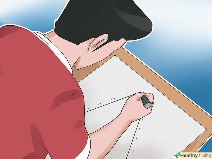 Зробіть начерк. зробіть начерк на аркуші паперу або картону. Вам належить зробити дванадцять кулястих трикутників висотою 75 см.і з підставою 50 см. на великому аркуші паперу або картону намалюйте пряму лінію розміром 50 см. потім, знайдіть середину лінії і відміряйте 75 см. від цієї точки. Переконайтеся, що ваша лінія перпендикулярна, використовуючи математику або транспортир. Намалюйте плавну дугу від точки 75 см. до одного з кінців лінії 50 см.надайте їй бажану форму і потім складіть аркуш навпіл і виріжте начерк по лініях.