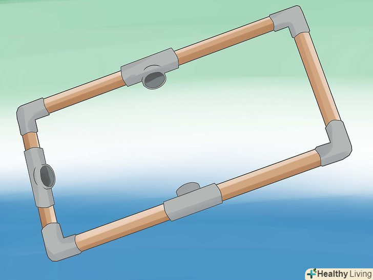 Спорудити горизонтальну секцію. зробіть довгу сторони також як і у вертикальній секції (труби по 30 і 45 см.з L-образними з'єднаннями на кінцях). Однак, приєднайте 30 см. трубу до кінців, розташованих ближче до Т-образного з'єднання посередині, а інша сторона повинна складатися з двох 20 см.труб, з'єднаних Т-подібним з'єднанням. Тепер у вас повинно бути дві прямокутних конструкції, одна в іншій.