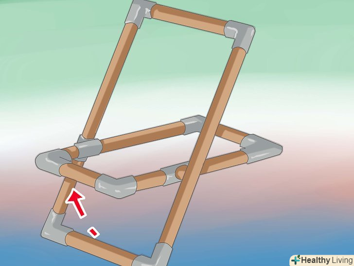 Натягніть клапоть. клапоть, який буде протягнутий між верхньою частиною стільця і переднім краєм сидіння формує сидяче місце для вас. Ви можете зробити цей клапоть з тканини або можете самі його зробити, наприклад, з клейкої стрічки для герметизації трубопроводів опалення. В результаті конструкція буде являти собою каркас і довгий клапоть посередині, прикріплений зверху і знизу до труб ПВХ. Ви можете пришити краю клаптя або схитрувати і приробити липучки на кінці клаптя.