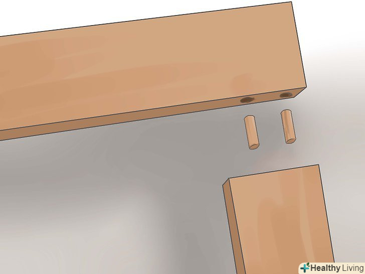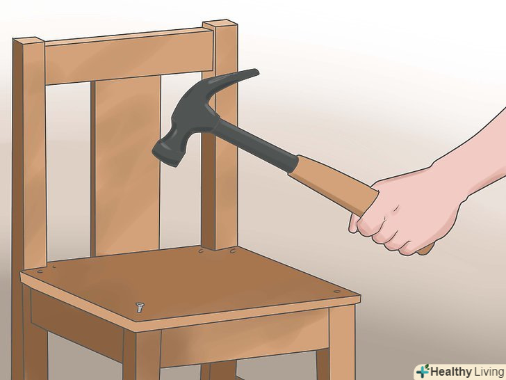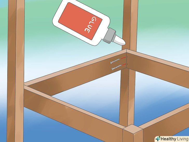 Спорудити спинку стільця. намажте клеєм і вставте дюбелі в обидва кінці 3 частин, зроблених з дошки 1x4. Потім, вставте їх в 1x4 і в спинку стільця. Дайте клею підсохнути, перш ніж продовжити.