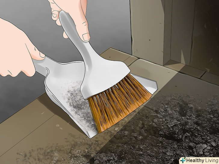 Щіткою і совком зберіть сміття з Каміна. все сміття викиньте у відро для сміття.