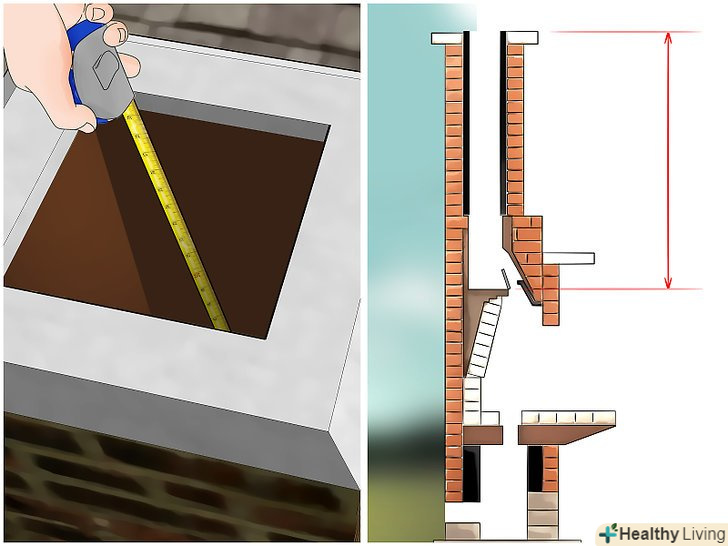Виміряйте шахту димоходу. щоб почистити його, вам знадобляться інструменти відповідного розміру. Виміряйте димохід знизу через камін. Ви також можете піднятися вгору по сходах і виміряти його зверху.- Визначте розмір і форму шахти. Вона буде або квадратної, або круглої, змінного розміру.
