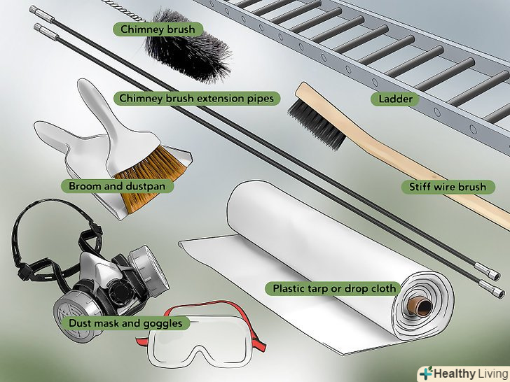 Купіть все необхідне. сходіть в магазин інструментів і купіть наступні предмети заздалегідь:- Щітка для димоходу, дротяна або пластикова. Купуйте щітку відповідного розміру, відповідно до висоти димоходу.