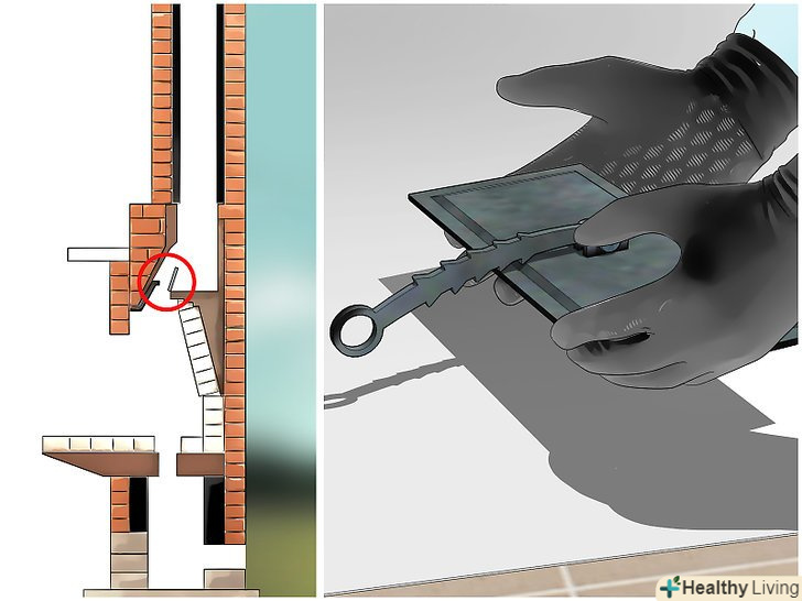 Зніміть заслінку з шахти димоходу. знайдіть всередині димоходу ручку заслінки і почистіть її невеликою дротяною щіткою. Відокремте її від димоходу і покладіть в сторону на тканину, щоб вона не заважала вам, коли будете чистити камін щіткою.