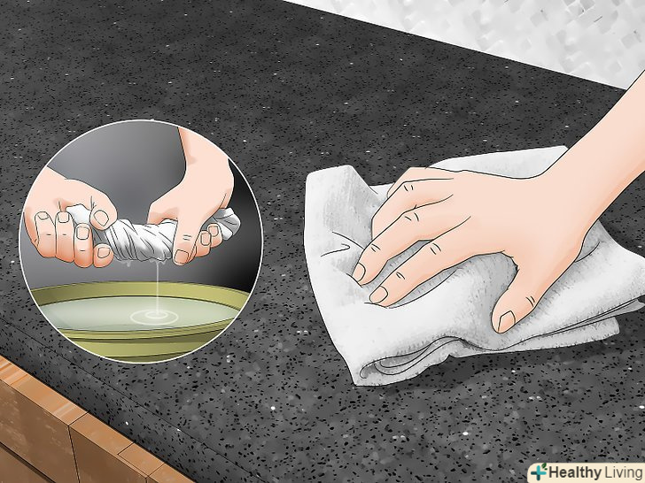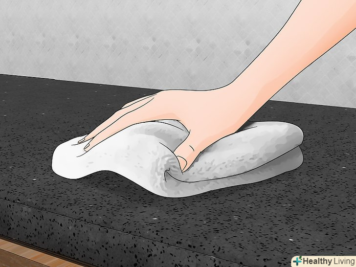 Як слід очистіть і висушіть стільницю. використовуйте для цього миючий засіб, спеціально призначений для граніту. Його можна придбати в магазині або зробити самостійно зі спирту, засоби для миття посуду і чистої води.- Витріть стільницю миючим засобом, а потім змоченою в теплій воді чистою ганчіркою з мікроволокна.