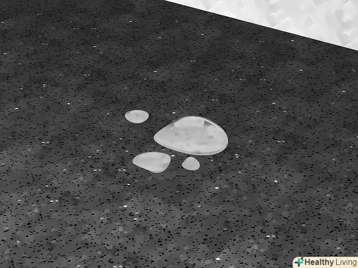 Перевірте захисне покриття. хлюпніть на гранітну поверхню водою і подивіться, як вона себе поведе. Якщо вода збереться в краплі, покриття ціле. Якщо ж вода розтечеться по поверхні, прийшов час оновити захисне покриття. [15]- Покриття захищає поверхню граніту від відколів і плям.