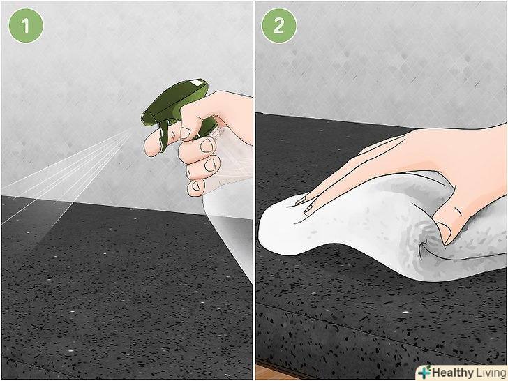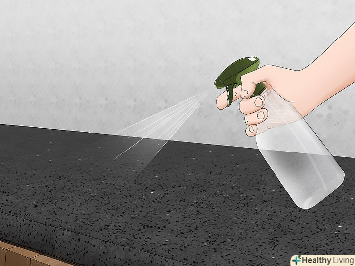 Обприскуйте стільницю дезинфікуючим розчином раз в кілька днів. використовуйте для цього пляшку з розпилювачем, щоб рівномірно розпорошувати розчин по поверхні. Наносите розчин на всю стільницю і не пропускайте окремих ділянок. Зачекайте 3-5 хвилин, поки дезінфікуючий розчин подіє. [6]- Можна не залишати розчин на стільниці, якщо ви не збираєтеся дезінфікувати її.