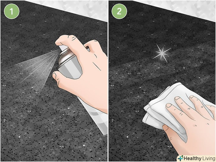 Рівномірно розпиліть по поверхні граніту герметик. простежте, щоб він покрив всю поверхню граніту. Найкраще використовувати для цього балончик з розпилювачем. Після того як ви завдасте герметик, розітріть його чистою ганчіркою з мікроволокна, щоб рівномірно покрити їм всю поверхню. [16]- Використовуйте «просочувальний» герметик для граніту, який проникає в Камінь. Такий герметик можна придбати в магазині господарських товарів або замовити через Інтернет.