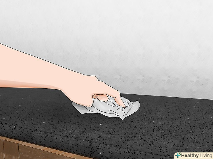 Висушіть стільницю після того, як витрете розчин. ще раз занурте ганчірку в мильну воду. Протріть стільницю, щоб видалити з неї дезінфікуючий розчин. При бажанні можна потім протерти стільницю ганчіркою, змоченою в чистій воді. [7]- Витріть стільницю сухою ганчіркою, щоб надати їй блиск.