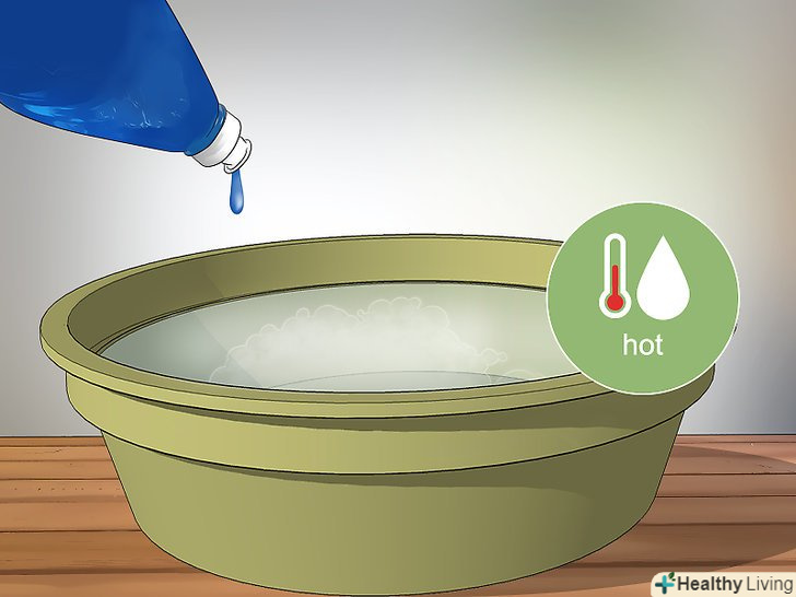 Використовуйте для протирання теплу воду і засіб для миття посуду. наберіть в раковину або невелике відро теплу воду. Для чищення граніту найкраще використовувати саме теплу воду. Додайте трохи рідкого м'якого засобу для миття посуду і злегка перемішайте воду, щоб воно розчинилося. [1]- Точна пропорція неважлива. Просто простежте, щоб вода стала трохи мильною.