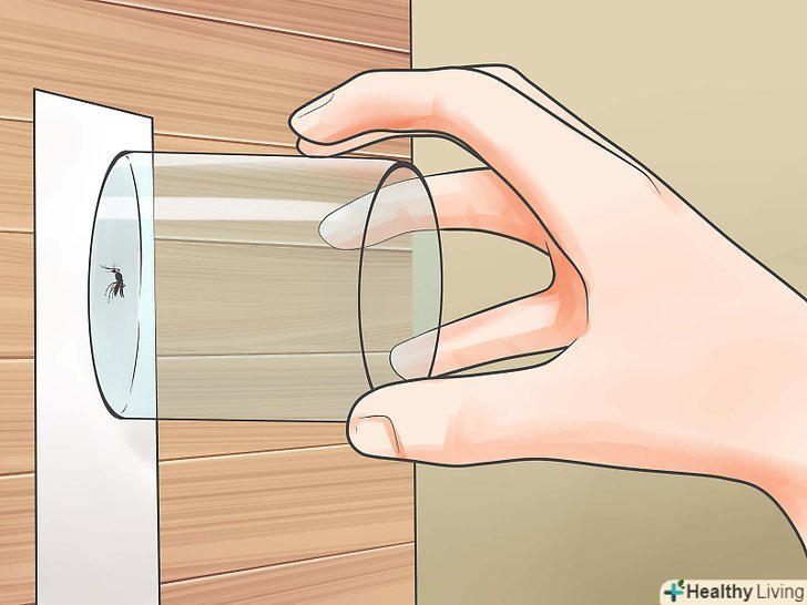 Зробіть пастку зі склянки. якщо комар полетить, перш ніж ви грюкнете по стіні, він, швидше за все, реагує на порив повітря при замаху. Спробуйте швидко накрити прозорим склянкою поверхню, на якій сидить комар. Потім просуньте аркуш паперу або картону між склянкою і поверхнею, щоб можна було переміщати пастку разом з комаром. Винесіть його на вулицю, обережно вийміть папір і роздушіть комара або просто залиште його задихатися під склянкою.
