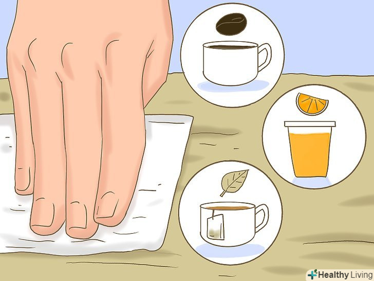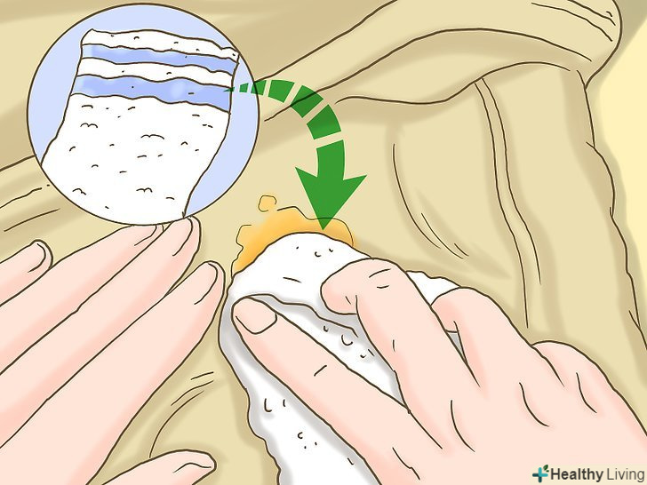Використовуйте паперовий рушник, щоб вивести плями від кави, соку і чаю. помістіть один шар паперового рушника на пляму і накрийте його ще одним шаром паперового рушника, потім натисніть на пляму руками або покладіть на нього кілька книг.- Спробуйте вивести пляму, протерши його мокрим рушником, змоченим в білому оцті. Чи не просочуйте замшу оцтом, а тільки протріть її поверхню рушником.