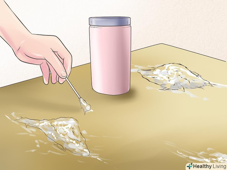 Видаліть плями.- Якщо ви виявите, що плями не так легко видалити, дотримуйтесь дій вище для розлитих рідин, «припарки» можете використовувати, щоб видалити пляму з каменю. Припарки для каменю очищають без кислоти, поглинають частинки глиняного очищення, яка видаляє глибоко в'їдаються плями масла, мастила і світлий Цементний розчин з полірованого і неполірованого натурального каменю. Припарки можуть призвести до потьмяніння блиску полірованого каменю. Якщо це станеться, ви повинні будете використовувати мармурову поліроль, щоб відновити природний блиск.