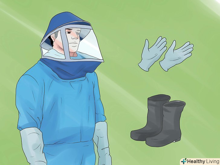 Одягніть захисний одяг. сховайтеся якнайкраще, щоб вас не змогли вжалити. Одягніть кілька шарів одягу, а також надіньте на обличчя щось на зразок маски.- Намагайтеся не перевантажувати себе, так як ви повинні залишатися мобільні. Деякі типи легкого захисного одягу допоможуть вам у довгій роботі.