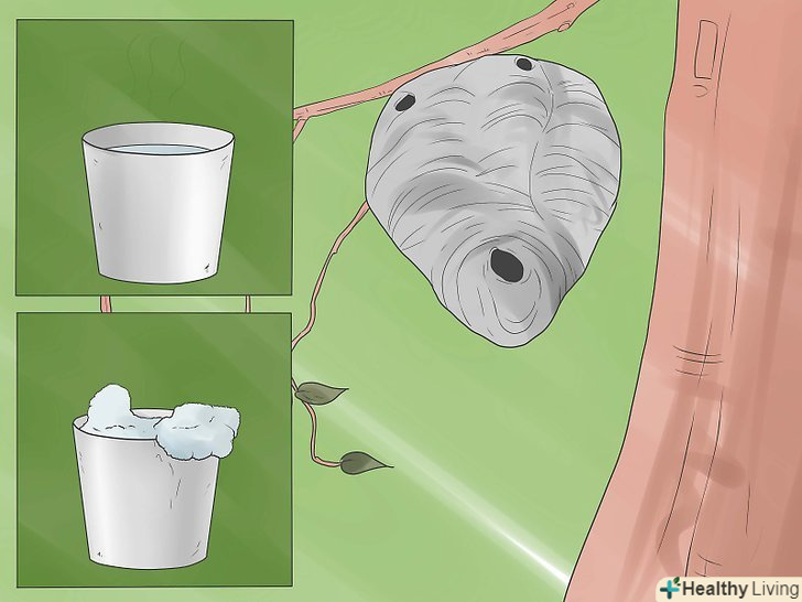 Виберіть собі зброю. існує два головних способи знищення ос без застосування хімікатів.- Окріп: так, найпростіший зі всіляких способів. Просто закип'ятіть воду у великій каструлі і вилийте її на гніздо. За один раз ви зможете вбити сотні і навіть тисячі ос, але для того, щоб убити їх усіх вам, можливо, необхідно буде виконати це кілька разів. Вилийте окріп на гніздо і біжіть якомога швидше до укриття.
