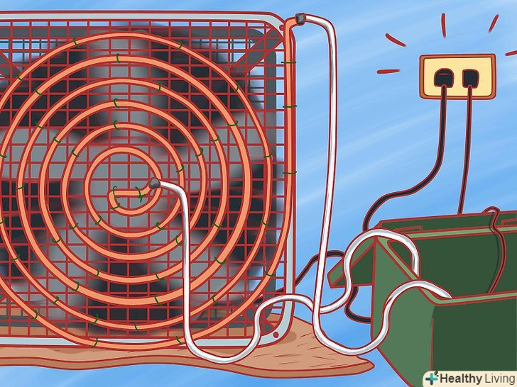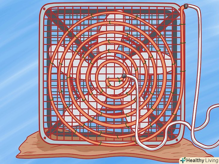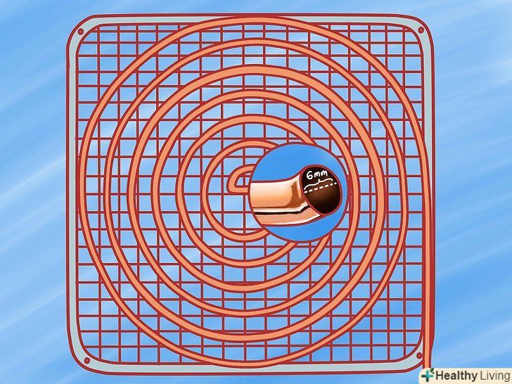 Прикріпіть до цієї сітки шматок мідної трубки діаметром 6 мм. прикріплюйте її у вигляді концентричних кіл, починаючи з центру сітки.- Прикріпіть кінець трубки до центру сітки за допомогою хомутика.