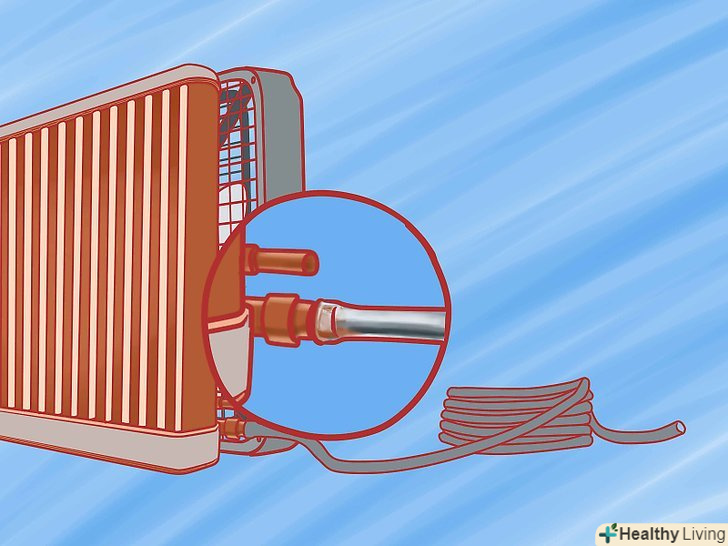 Приєднайте інший кінець шланга до радіатора. можливо, вам доведеться підібрати шланг такого діаметру, щоб він підійшов до радіатора. Довжини шланга повинно бути достатньо, щоб він дотягнувся до водопровідного крана.