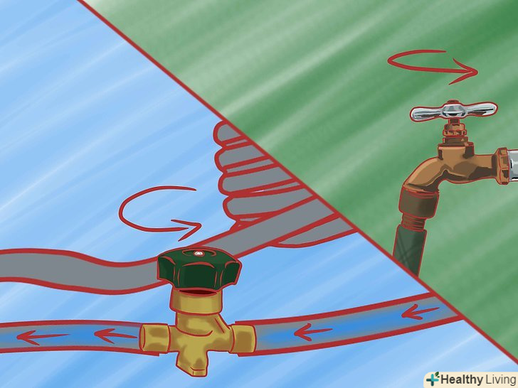 Повністю відкрийте клапан, який ви встановили на шлангу. потім відкрийте кран або садовий шланг.