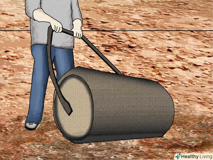 Утрамбуйте грунт газонним катком, щоб запобігти її від вимивання і зміщення в майбутньому. в якості альтернативи, можна гарненько пролити грунт водою і дати їй повністю висохнути. Повторюйте процес до тих пір, поки грунт не стане твердою і візуально рівною.