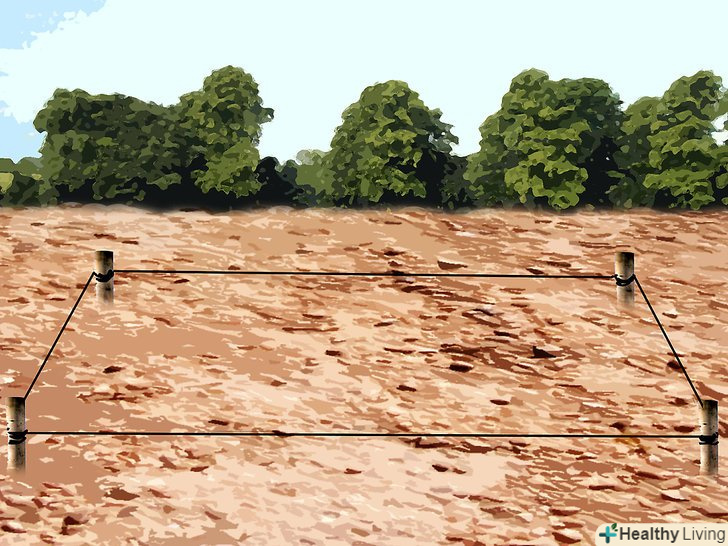 Відзначте межі території, яку вам необхідно вирівняти.- Проведіть виміри. Переконайтеся, що всі сторони однаково пропорційні, коли ви відзначаєте робочий квадрат або прямокутник.