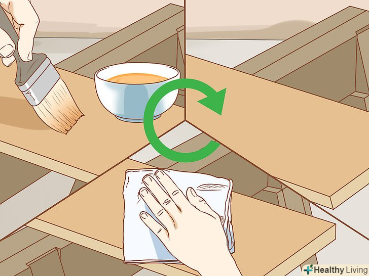 Витріть деревину чистою ганчіркою і дозвольте висохнути. протріть деревину у напрямку волокон і зберіть зайву вологу, наскільки це можливо. Потім залиште її в спокої до повного висихання. [12]- Цей крок дозволить остаточно проявити результат впливу харчової соди.