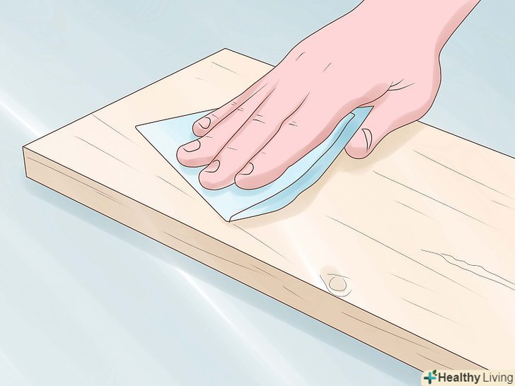 Відшліфуйте деревину(і при необхідностіОчистіть від покриття ), якщо вона раніше була чимось пофарбована. якщо деревина, яку Ви вирішили зістарити, раніше була покрита лаком або фарбою, відшліфуйте її наждачним папером, щоб дістатися до необробленого шару дерева. Якщо деревина була пофарбована не один раз, можливо, вам буде потрібно зняти з неї фарбу хімічним шляхом. [4]- При роботі з шліфувальною машиною або хімічними розчинниками фарб використовуйте захисні окуляри і робочий одяг з довгими рукавами.