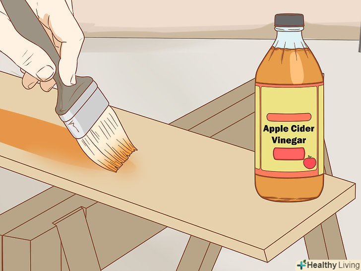 Скористайтеся білим винним або яблучним оцтом, щоб прискорити процес старіння. якщо у вас немає можливості забезпечити деревині мінімум 6 годин під сонцем, після нанесення пасти з харчової соди збризніть її оцтом. Дозвольте оцту подіяти протягом 10 хвилин (бажано під сонцем), перш ніж приступати до процесу видалення пасти, який однаковий як при використанні оцту, так і без нього. [9]- Використовувати можна як білий винний оцет, так і яблучний. Просто залийте його в пульверизатор.