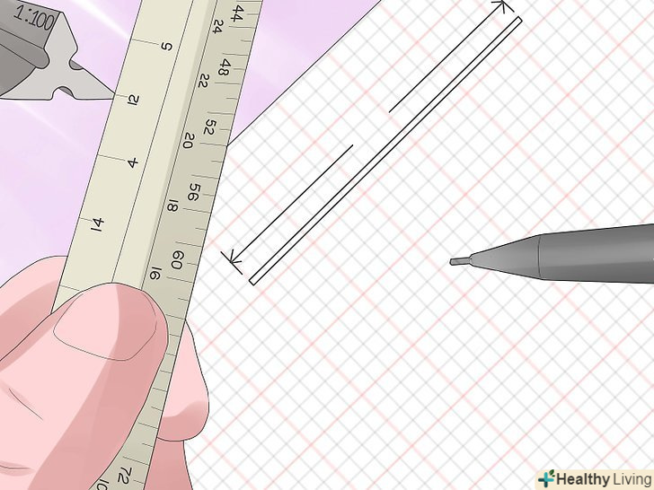 Пропорційно зменшіть свій завмер, щоб він вмістився на аркуш креслярського міліметрового паперу. спочатку порахуйте кількість квадратів по довгій стороні листа (наприклад, 39); дана сторона повинна вмістити в себе найдовшу деталь плану. Потім пропорційно зменшіть довжину стіни до меншого числа. Переважно використовувати чітку пропорцію, так як набагато простіше, наприклад, запам'ятати, що один квадрат на папері дорівнює одному метру, ніж, скажімо, 1,27 метра. Але з довжини стіни неможливо вивести чітку пропорцію, то може знадобитися використовувати не настільки досконалий масштаб.