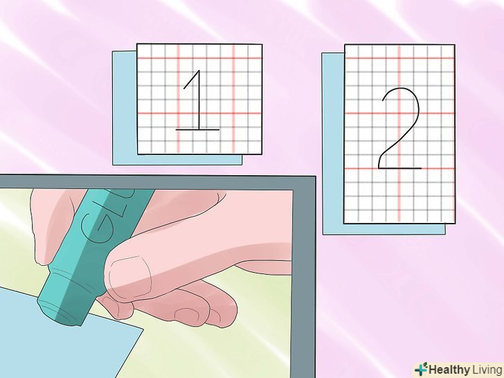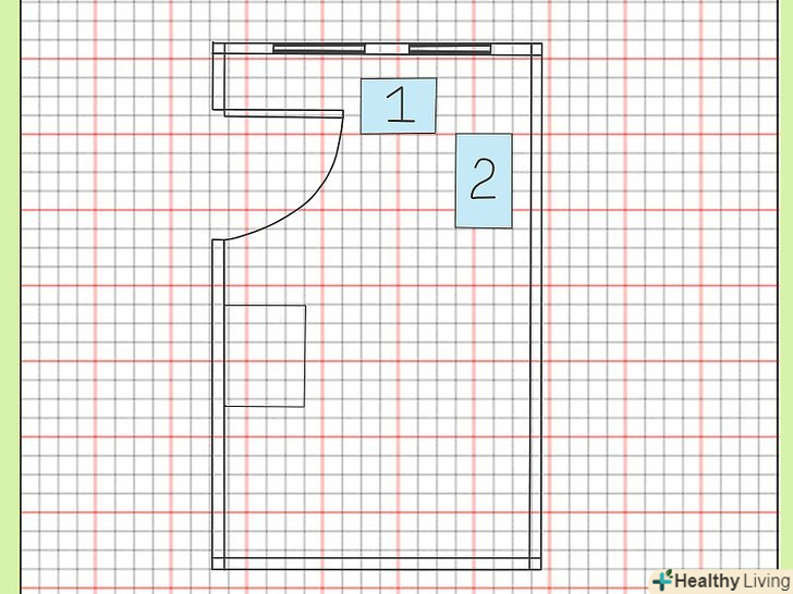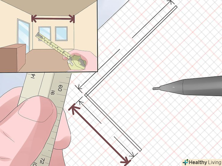 Якщо вам необхідні додаткові рекомендації, то нижче ви можете подивитися приклади, як в метрах, так і в футах.- Якщо довжина стіни становить кругле число метричних одиниць (наприклад, 90 футів), спробуйте розділити його на 2, 3, 4 і т.д. і подивитися, як співвідноситься результат з кількістю квадратів на креслярському папері (90/2= 45 – занадто багато, щоб вміститися в 39 квадратів; 90/3=30 – це відмінно впишеться простір 39 квадратів).