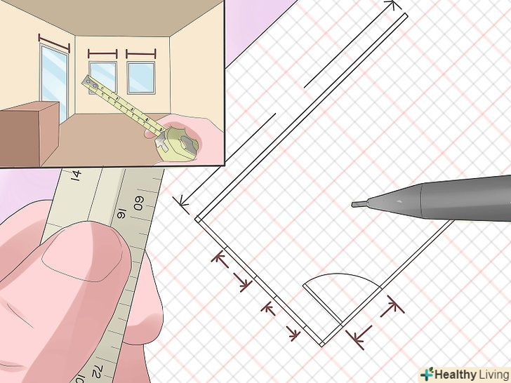 Виміряйте довжину і ширину вбудованих конструкцій (наприклад, підвіконь), конвертуйте їх відповідно до масштабу і внесіть в план.- При бажанні до плану можна додати пересувні предмети меблів.