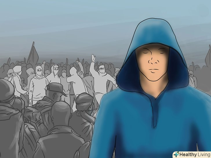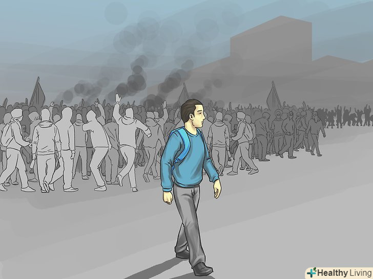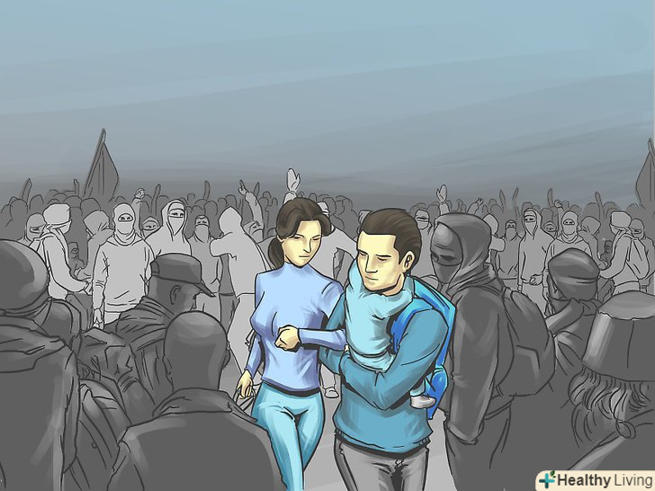 Не варто втручатися. якщо ви опинилися в гущі подій, не варто займати чиюсь сторону, допомагати або намагатися виділитися. Насправді, варто виділятися якомога менше, поки Ви вибираєтеся з натовпу і подалі від цього місця. Для цього тримайтеся ближче до стін і інших бар'єрів, уникайте вузьких місць або будь-яких ділянок, де багато людей стовпилося на невеликому просторі.