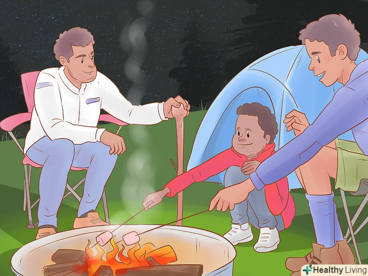 Їдьте на природу з друзями або родиною. Запросіть своїх друзів і рідних відправитися в похід або поїхати на природу. Можна розташуватися в лісі, в парку, на пляжі або навіть на власній дачі. Візьміть з собою намет, достатню кількість спальних мішків і їжі, щоб усім вистачило, поки ви на природі. [15]- Якщо ви вирішили розбити табір в громадському місці, переконайтеся, що вам не потрібно на це особливий дозвіл.