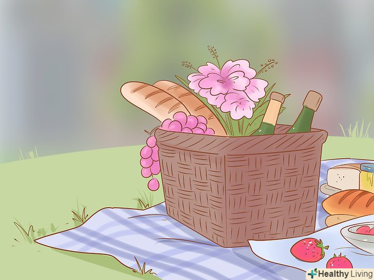 Виберіться на пікнік з друзями або родиною. Запросіть своїх друзів або рідних, щоб разом провести пікнік в лісі, парку або навіть на вашій власній дачі. Ви можете попросити кожного принести своє власне блюдо, щоб поділитися з іншими, а також обов'язково візьміть плед або покривало, щоб сидіти на ньому. [16]- Якщо на вулиці жаркий день, знайдіть тінисте місце для пікніка під деревом і принесіть побільше води або інших напоїв.