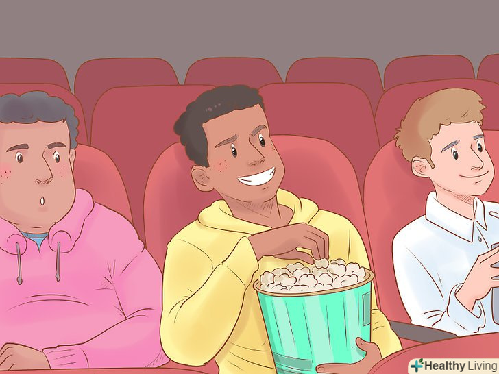 Сплануйте похід у кіно з друзями, щоб весело провести час. перевірте, чи йдуть в кінотеатрах фільми, які ви і ваші друзі хотіли б подивитися. Можна купити попкорн і солодощі або перекусити заздалегідь, щоб спокійно насолоджуватися фільмом.- Це гарна розвага, яким можна зайнятися в жаркий або дощовий день.
