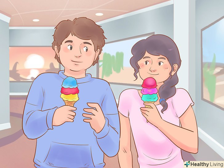 Покличте друзів в магазин морозива, щоб освіжитися. у спекотний день можна насолодитися морозивом або холодним йогуртом — це відмінний спосіб охолодитися. Запросіть друга зустрітися з вами в найближчому магазині морозива або запросіть свою сім'ю піти з вами. [19]