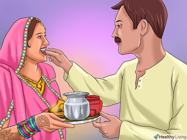 Залучіть свого чоловіка (або нареченого). майте на увазі, що незважаючи на те, що фестиваль проводиться жінками, чоловіки також беруть в ньому активну участь. За традицією вони обдаровують дружин подарунками в обмін на важкий піст і молитви. Поряд зі святкуванням зв'язку між двома подругами, це свято також служить нагадуванням вічного зв'язку між чоловіком і дружиною. [4]
