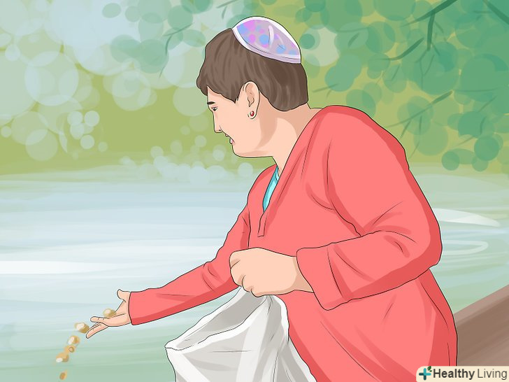 Дотримуйтесь обряд Ташліх (Іврит: "кидати"), який являє собою похід до водойми з проточною водою, куди викидається весь вміст кишень. Більшість людей кидають у водойму несвіжі хлібні крихти. Цей обряд проводять в перший день Рош ха-Шана.